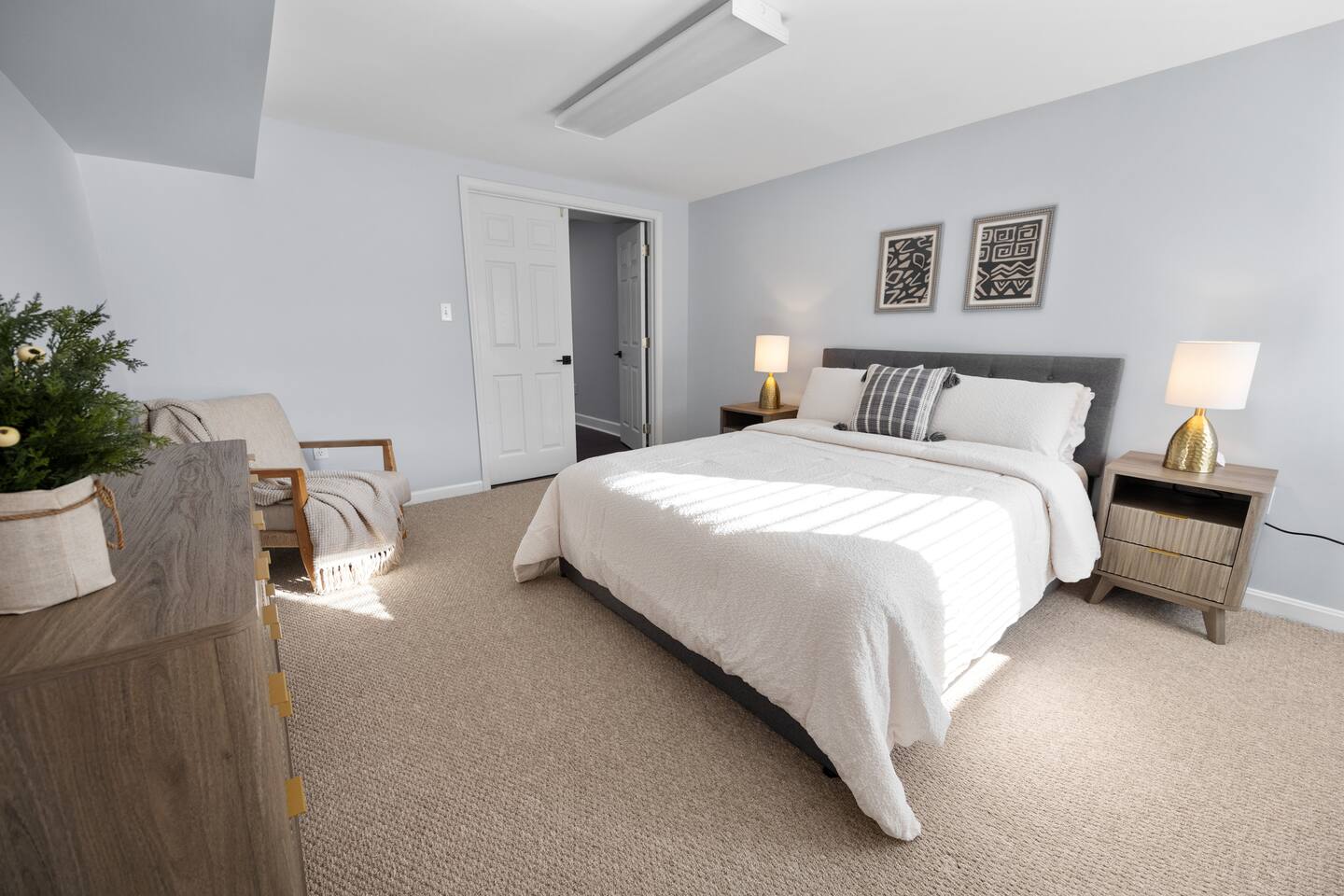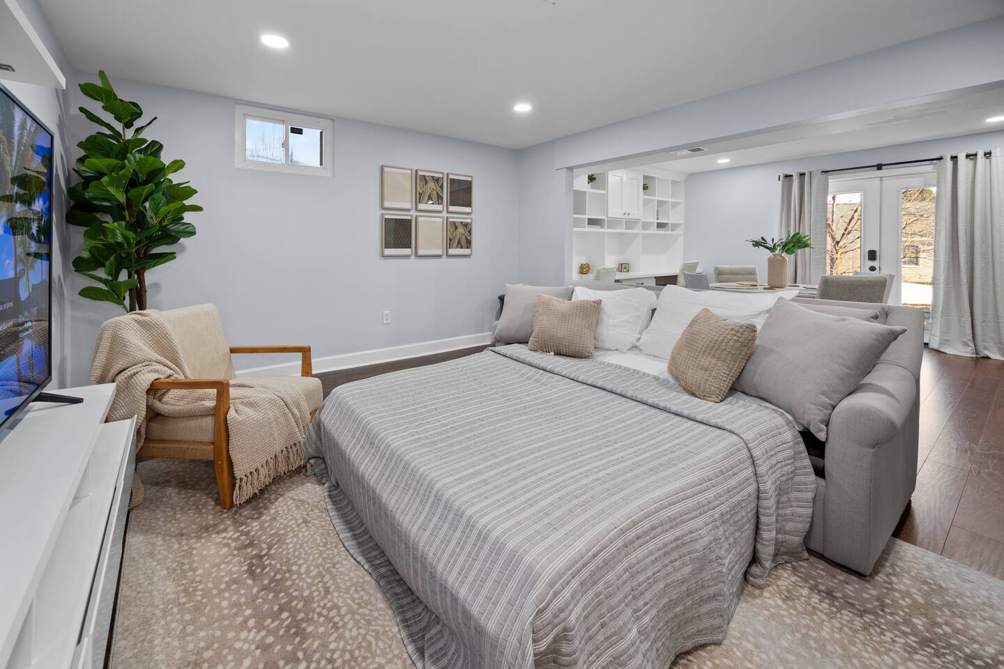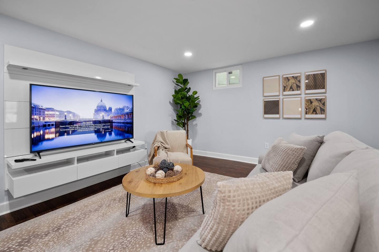 Elegant Private Basement Suite | Parking • 9 Min to Metro The suite features a beautifully furnished sleeping area with high-quality linens, a stylish living space perfect for unwinding, and a well-appointed kitchenette equipped with essentials for light cooking. The private bathroom offers plush towels and complimentary toiletries for a hotel-like experience. This suite is family-friendly and suitable for children ages 9 and up, offering a calm and comfortable environment for all guests.