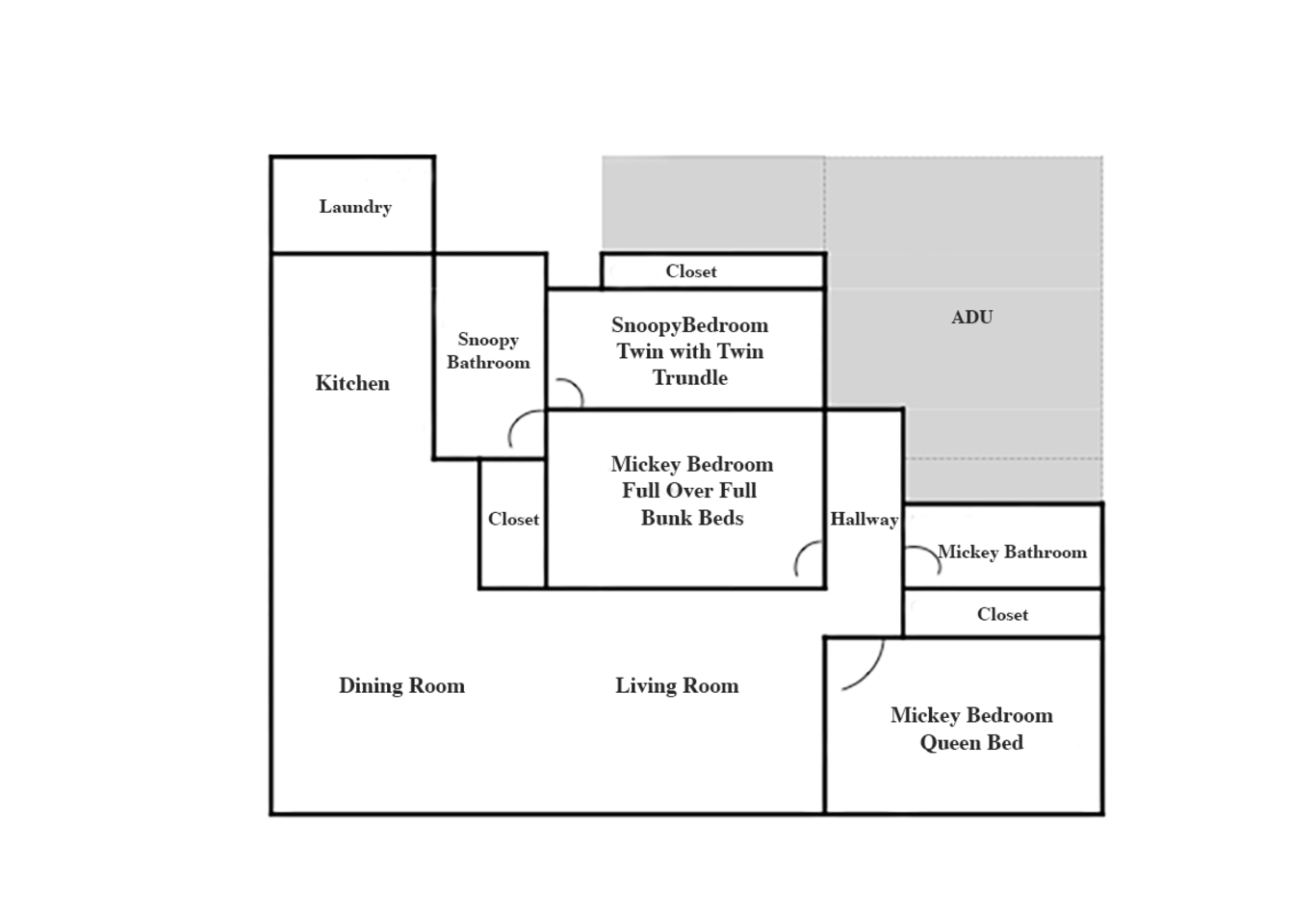 BED BREAKDOWN: Bedroom 1: Queen Bed; sleeps 2 Bedroom 2: Full-Over-Full Bunk Beds; sleeps 2 each Bedroom 3: Twin Daybed with Twin Trundle Underneath; sleeps 1 person each Living Room: Queen Pull Out Sofa Bed; sleeps 2 - We also have 2 Twin Rollaway Beds you can put anywhere; sleeps 1 each ✔Sleeps up to 8 comfortably but can fit 10 ✔ Soft water throughout the home plus alkaline drinking water located at the kitchen sink ✔ 2 miles from Downtown Buena Park ✔ Driveway and plenty of street parking ✔ Dedicate workspace for the professional travelers *** There is an ADU in the back of this home that has its own entrance. Tenant wont bother guests during visit. The right side of driveway is for guests to park in, two cars fit tandemly. *** Top Attractions near us: • Disneyland (5 mi/8 km) • Anaheim Convention Center (5.9 mi/9.5km) • Knott's Berry Farm (3.5 mi / 5.6 km) • Nearest Beach: Huntington Beach (15 mi) CLEANLINESS is a top priority. There is always a professional, thorough, cleaning & sanitizing between guests from the refrigerator to the remote controls & light switches. If the guests notice something not in line with this, please inform host within 24 hours of check in so we may address it.
