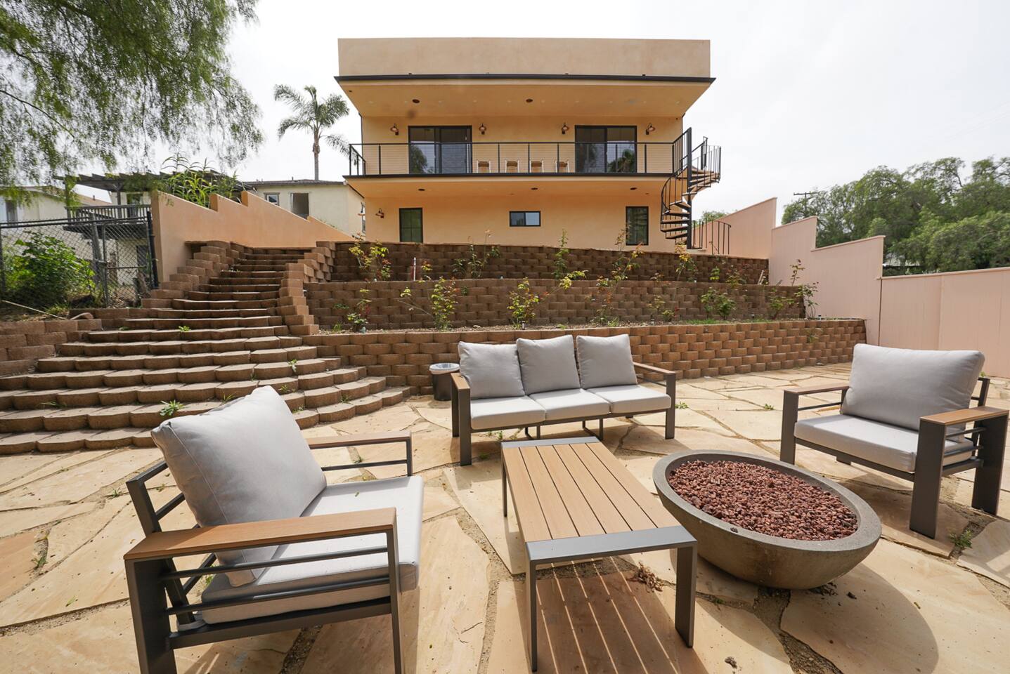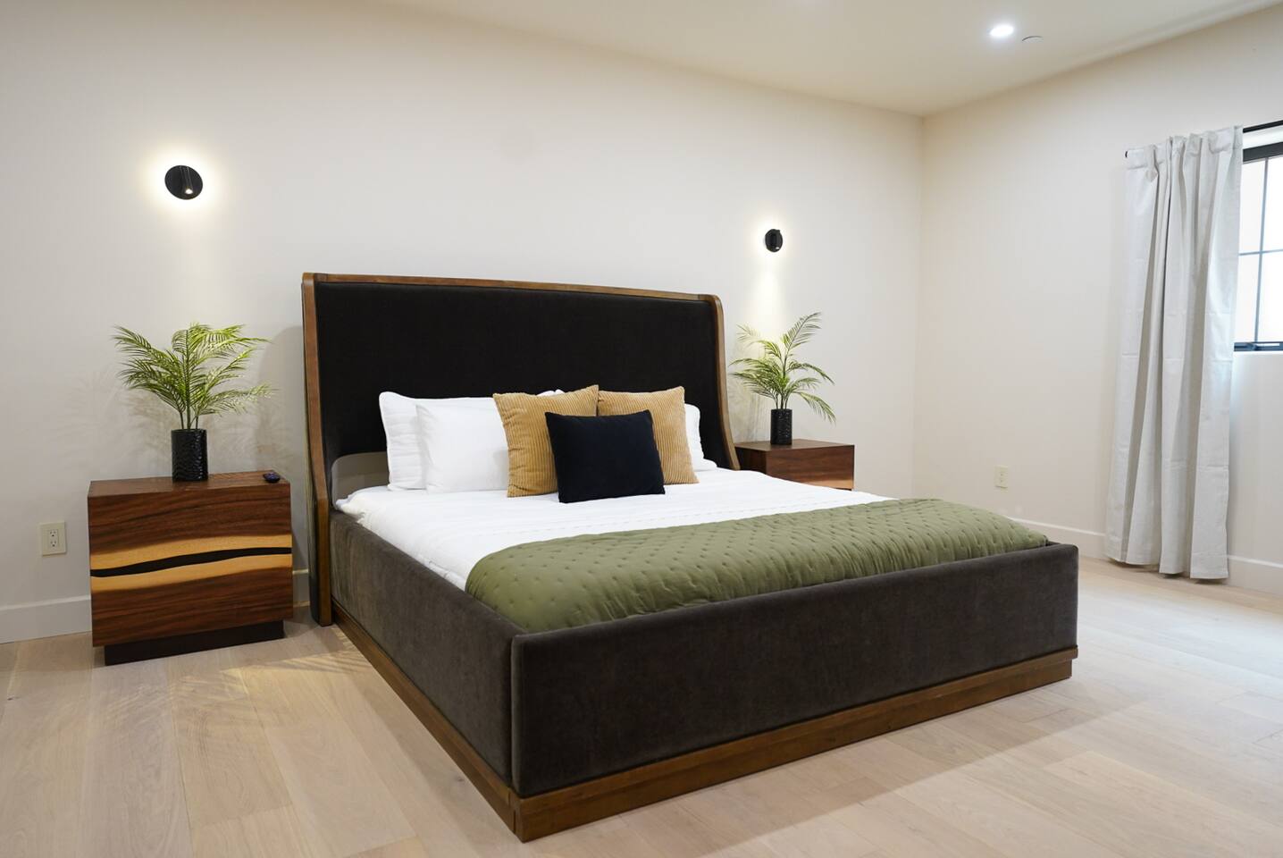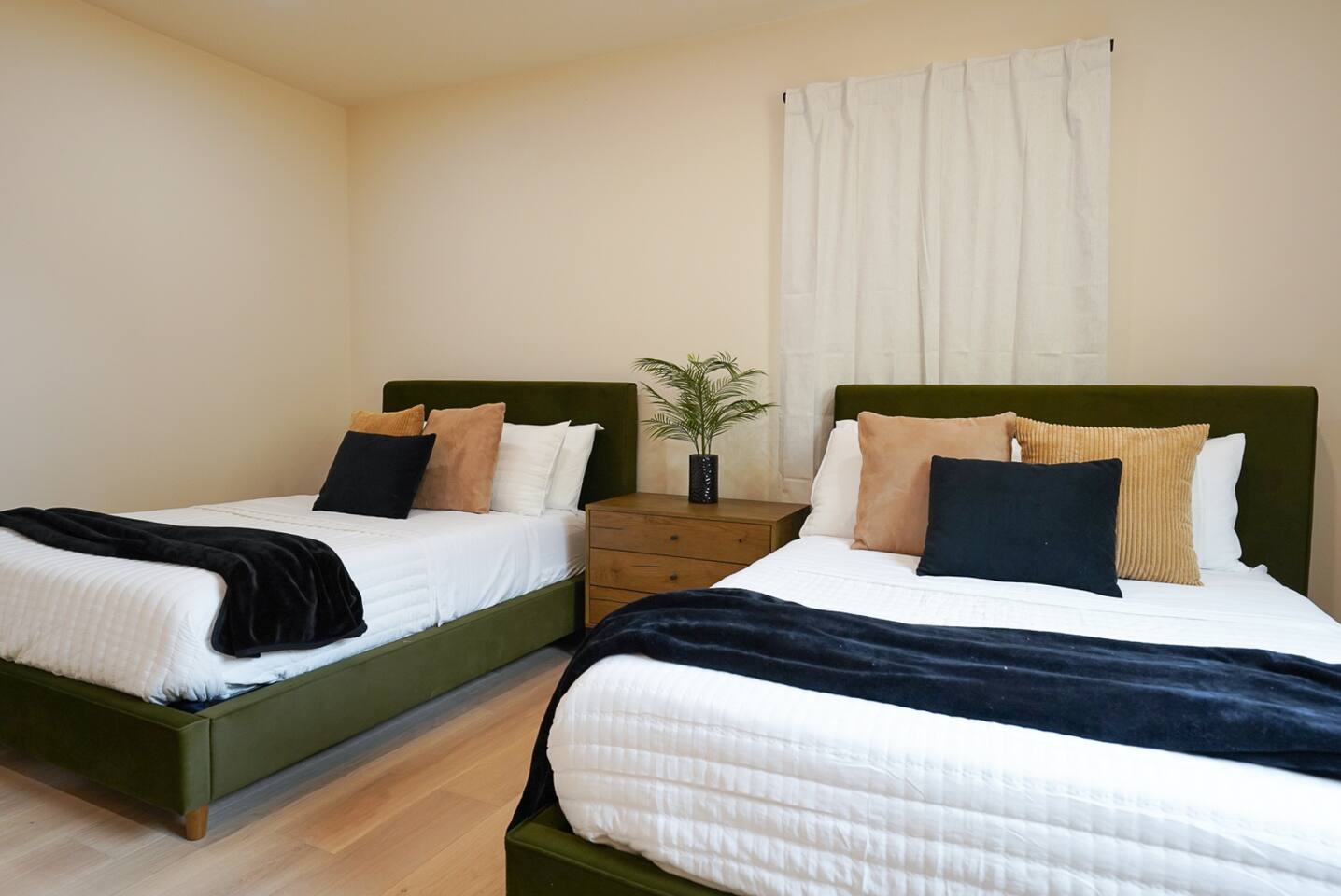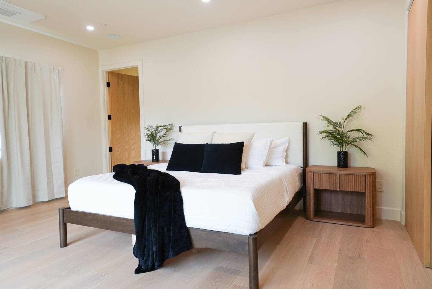 This spacious 3-level luxury home offers comfort, privacy and plenty of room for groups and families. Ground Level: Features a 2-car garage, a large open-concept kitchen, dining area and living room, a convenient half bathroom and one of the private master suites with a king bed and its own large bathroom. Lower Level: Includes a second master suite with a king bed, plus two very large bedrooms each furnished with two full beds. These bedrooms share a spacious Jack & Jill full bathroom. Top Level: The open rooftop terrace is perfect for relaxing and enjoying the views. Outdoor Space: The backyard includes comfortable seating and lounge furniture, ideal for enjoying Southern California weather. Sleeping Arrangements: • 2 King beds (master suites) • 4 Full beds (two bedrooms with two beds each) • 1 Queen sleeper sofa (living room) This layout makes the home perfect for large families, groups or guests traveling together who still want privacy and space.